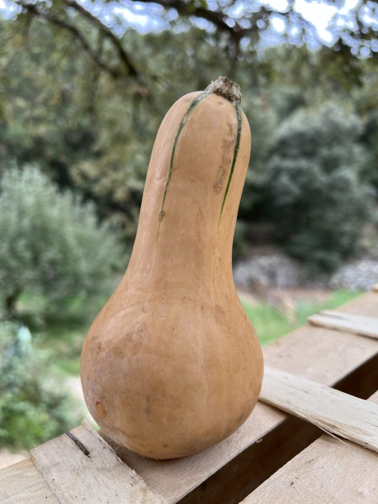Courge Butternuts du jardin, pièce d’environ 1kg~1,5kg, au goût subtil de noisette, sucrée et charnue. En gratin, soupe, velouté. Bon plat hivernal.