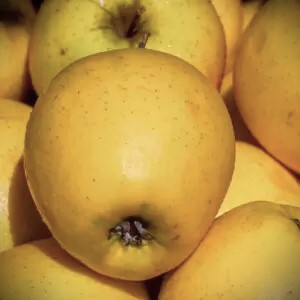 Pomme Golden, beau calibre, provenant de Salon de Provence (13), label Haute Qualité Environnemental, une bonne pomme de montagne, fondante et juteuse, bonne pour la cuisine et les en-cas.